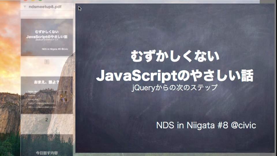 先日の NDS meetup8 「JavaScript Day」では色々なことを学んだわけですが、学んだ幾つかのトピックをつかって復習がてら「プレゼン用のタイマー」みたいなアプリを作ってみました。