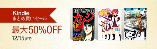 またKindleで実施してます。前回は手塚治虫特集のまとめ買い50%OFFだったのですが、今回は対象となるタイトルがやたら多いです。